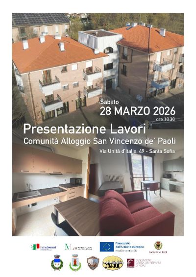 A Santa Sofia presso la Comunità Alloggio dell'ASP San Vincenzo de' Paoli, Via Unità d'Italia n. 49, appuntamento per sabato 28 febbraio ore 10:30 per la presentazione dei lavori eseguiti.